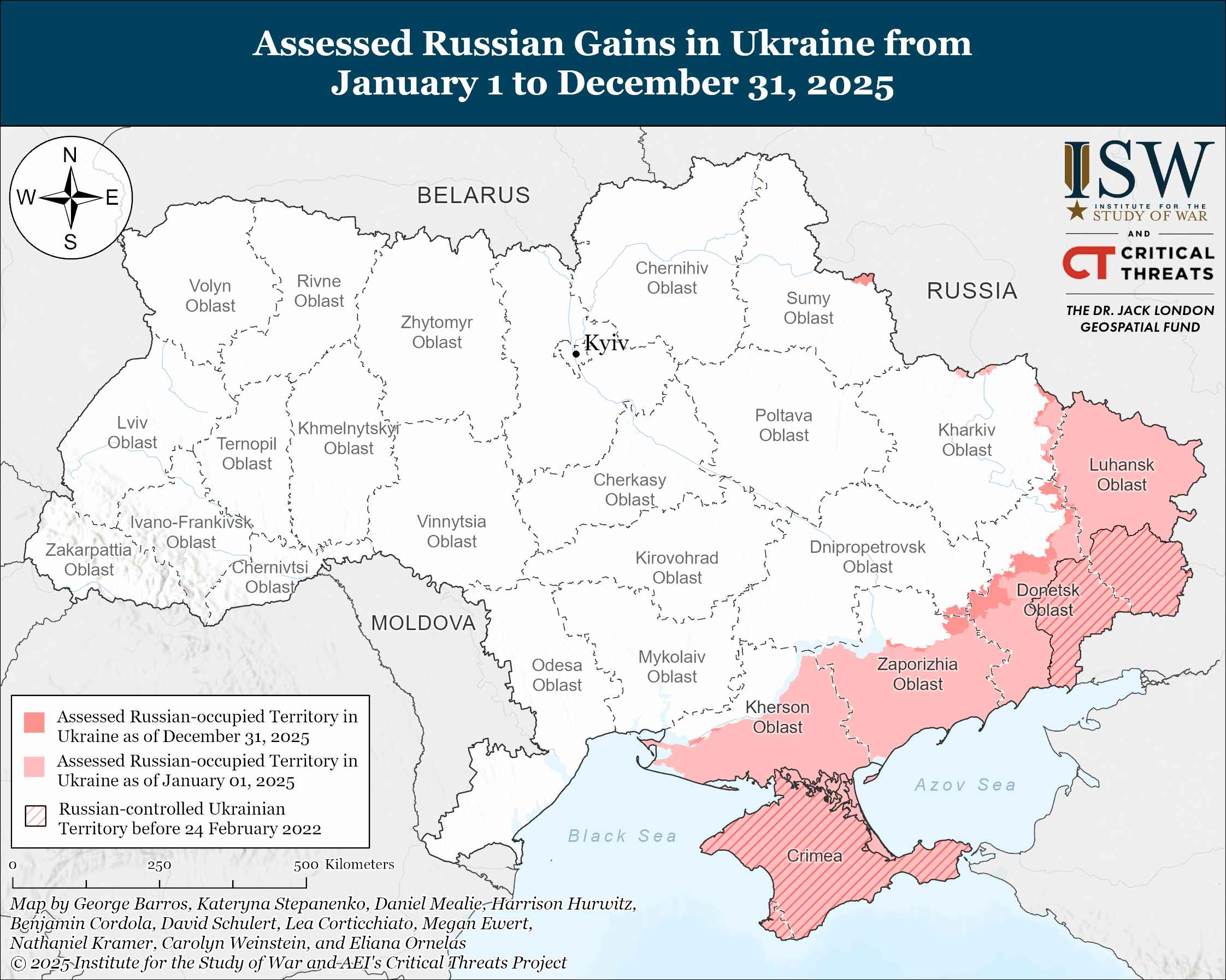 Especially given the high human toll at the cost of so little territorial gain. The Institute for the Study of War’s final report for 2025 assesses that Russian “forces seized 4,831 square kilometers in Ukraine and regained roughly 473 square kilometers that Ukrainian forces had taken in Kursk Oblast in 2025.”