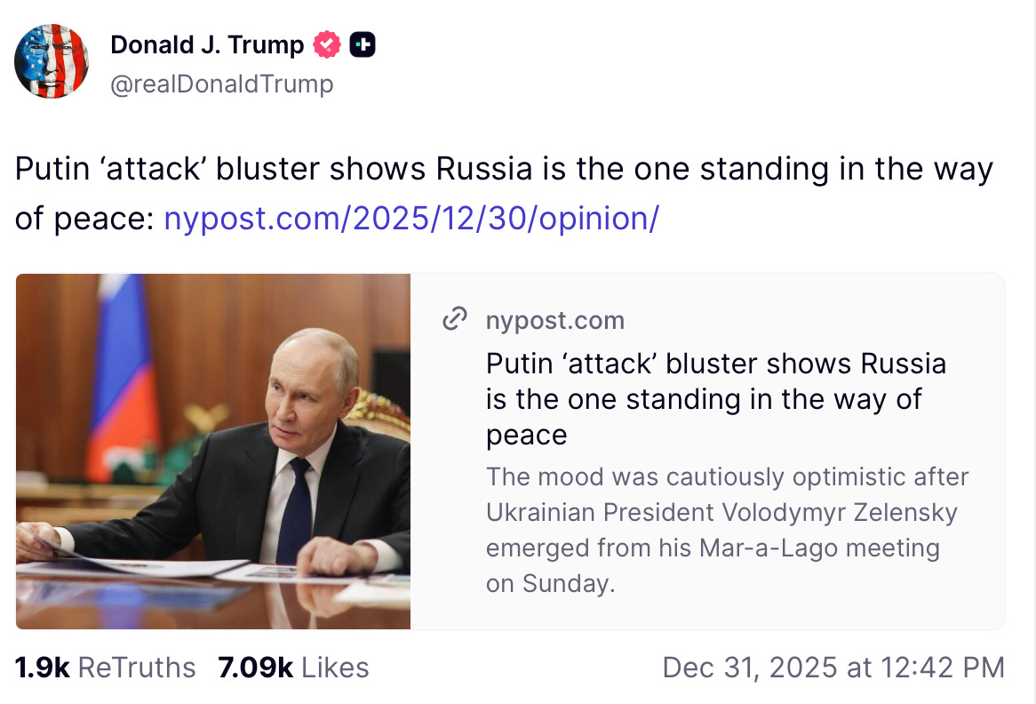 For now, at least, in trying to destroy Zelensky’s standing with Trump, Putin & Dmitriev have boxed themselves into a corner. It would be funny if they were the only ones paying the price, but many Ukrainians will pay the toll too as this bloody war enters a fifth year come February 22nd, 2026.